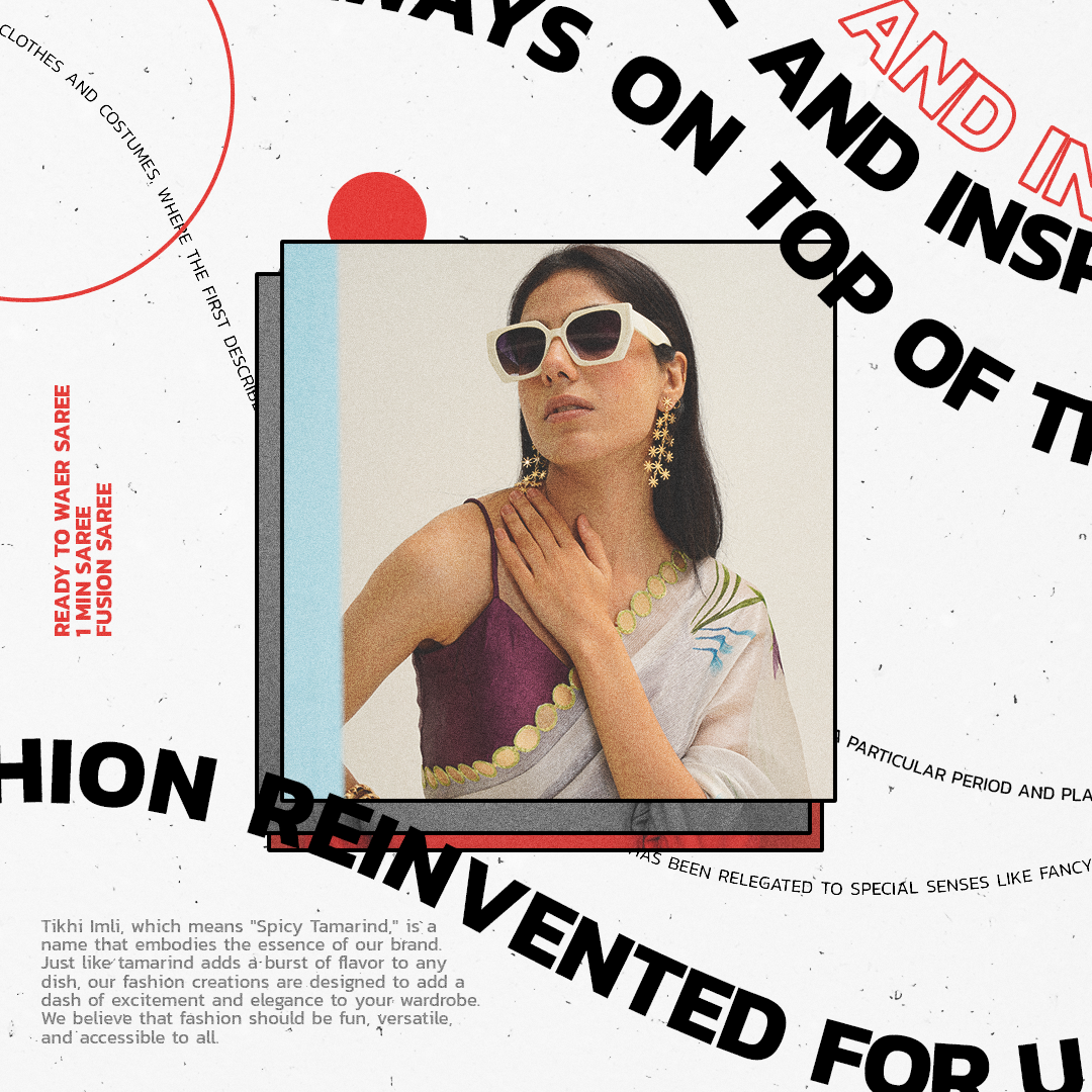 Tikhi Imli, which means "Spicy Tamarind," is a name that embodies the essence of our brand. Just like tamarind adds a burst of flavor to any dish, our fashion creations are designed to add a dash of excitement and elegance to your wardrobe. We believe that fashion should be fun, versatile, and accessible to all. Explore our wide range of Pre-draped, Ready to wear sarees and more!