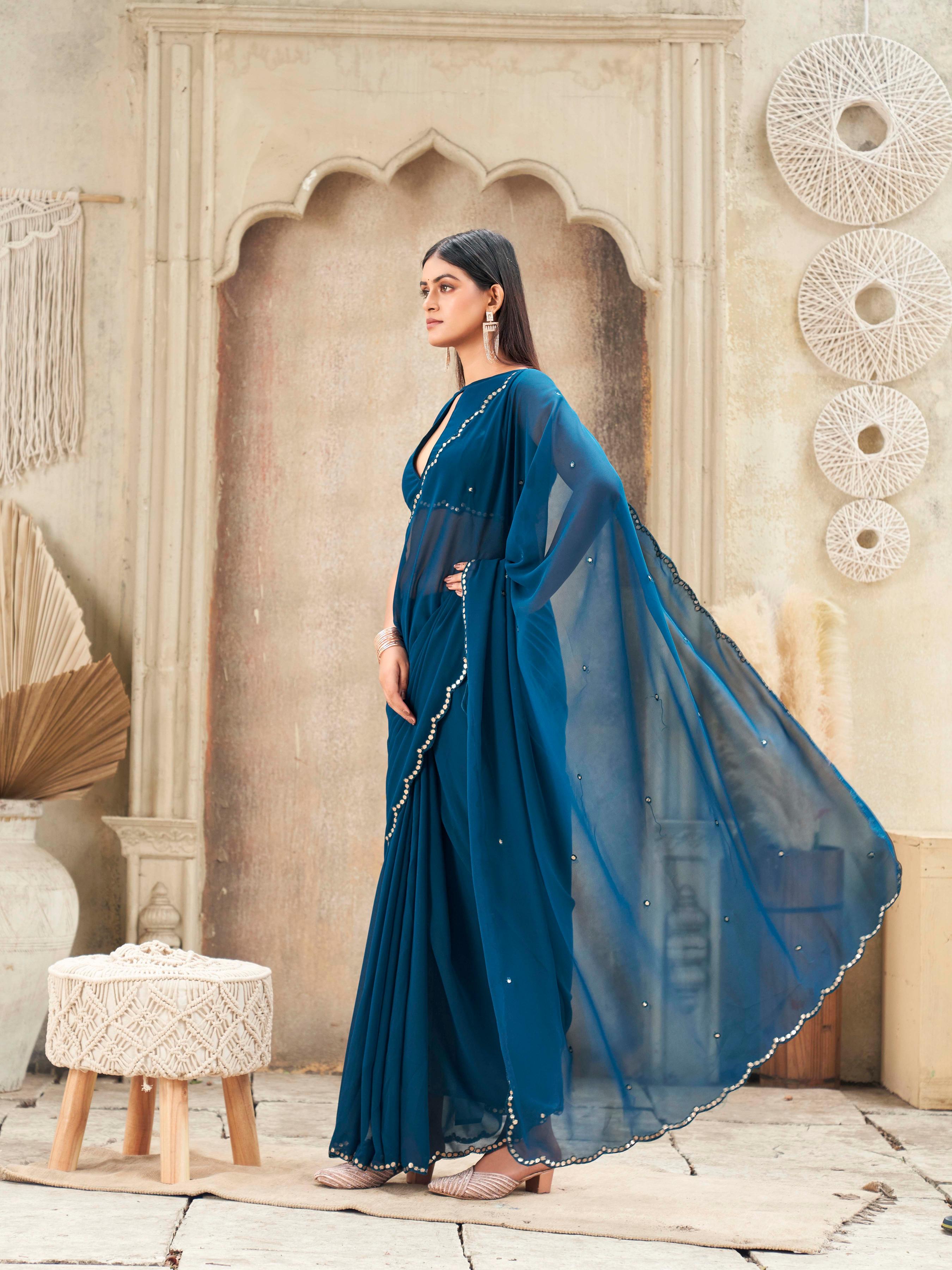 Ready to wear pink and gold colored two tone jimy chu saree with lycra blouse