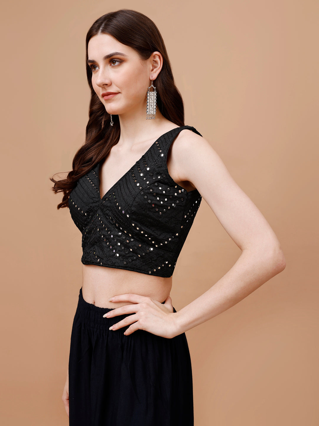 Mirror Work Embellished Sleeveless Saree Blouse