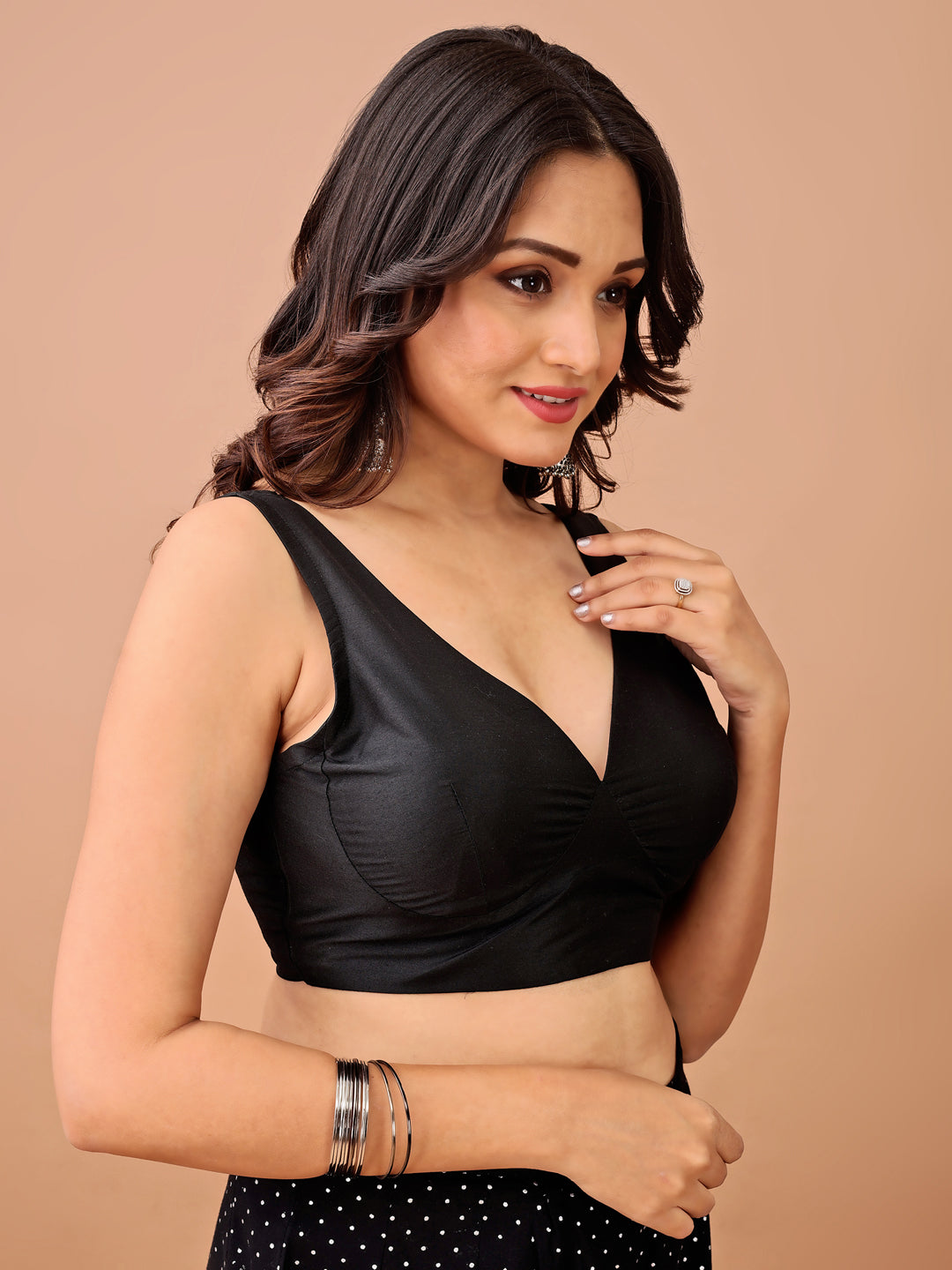 Black colour tafetta sleeveless blouse