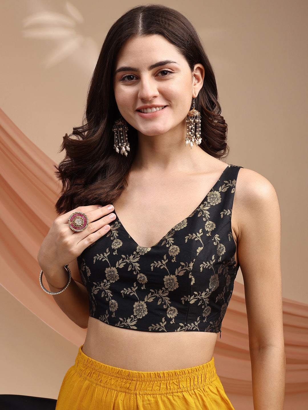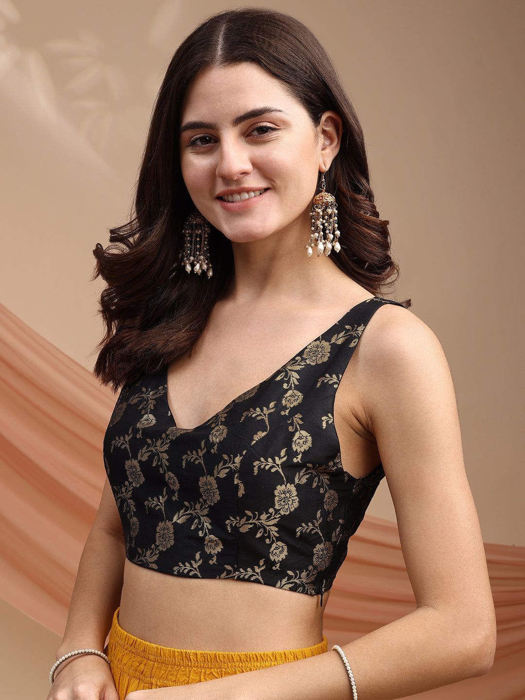 Black colour brocade sleeveless blouse