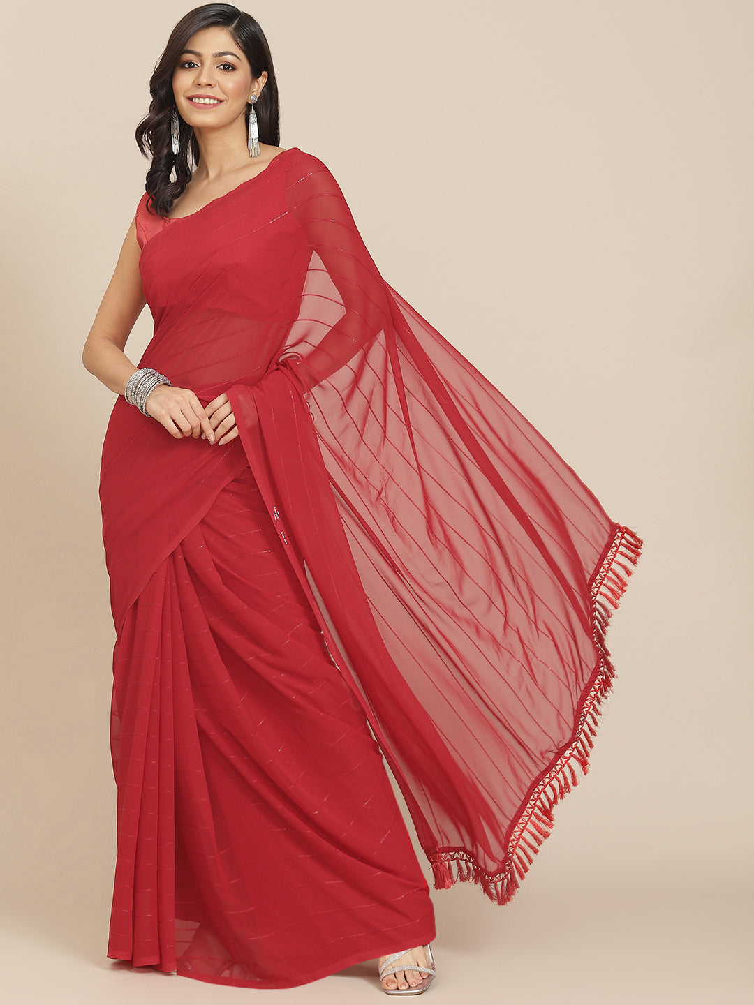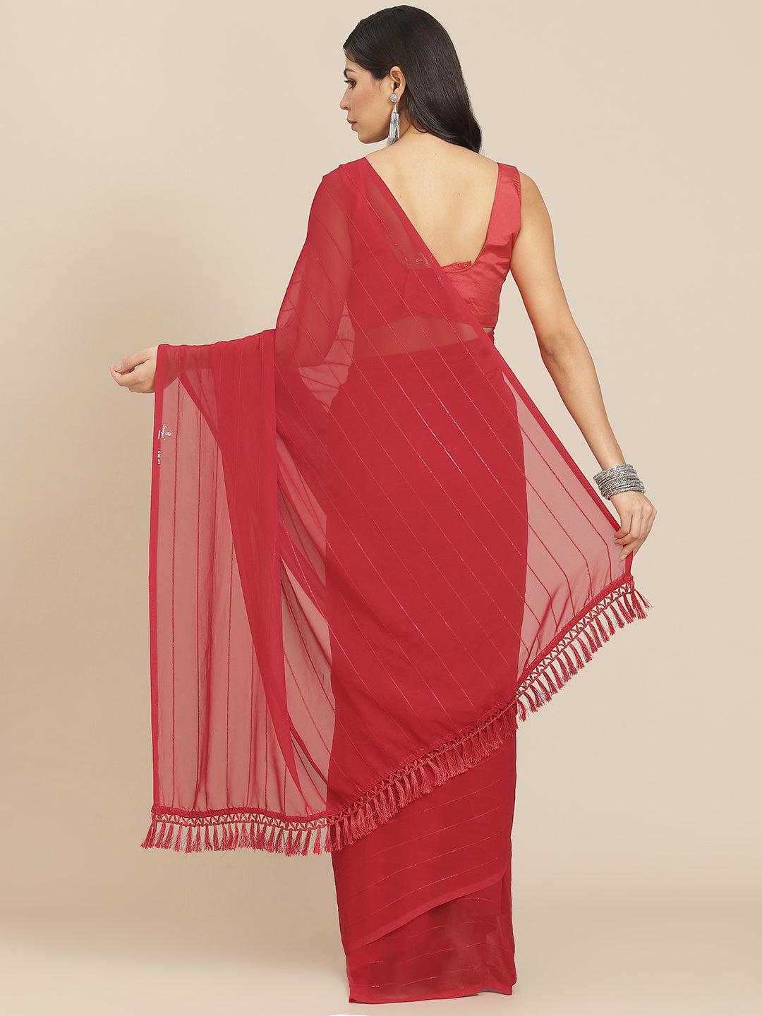 Striped Bollywood Georgette Saree  (Red)
