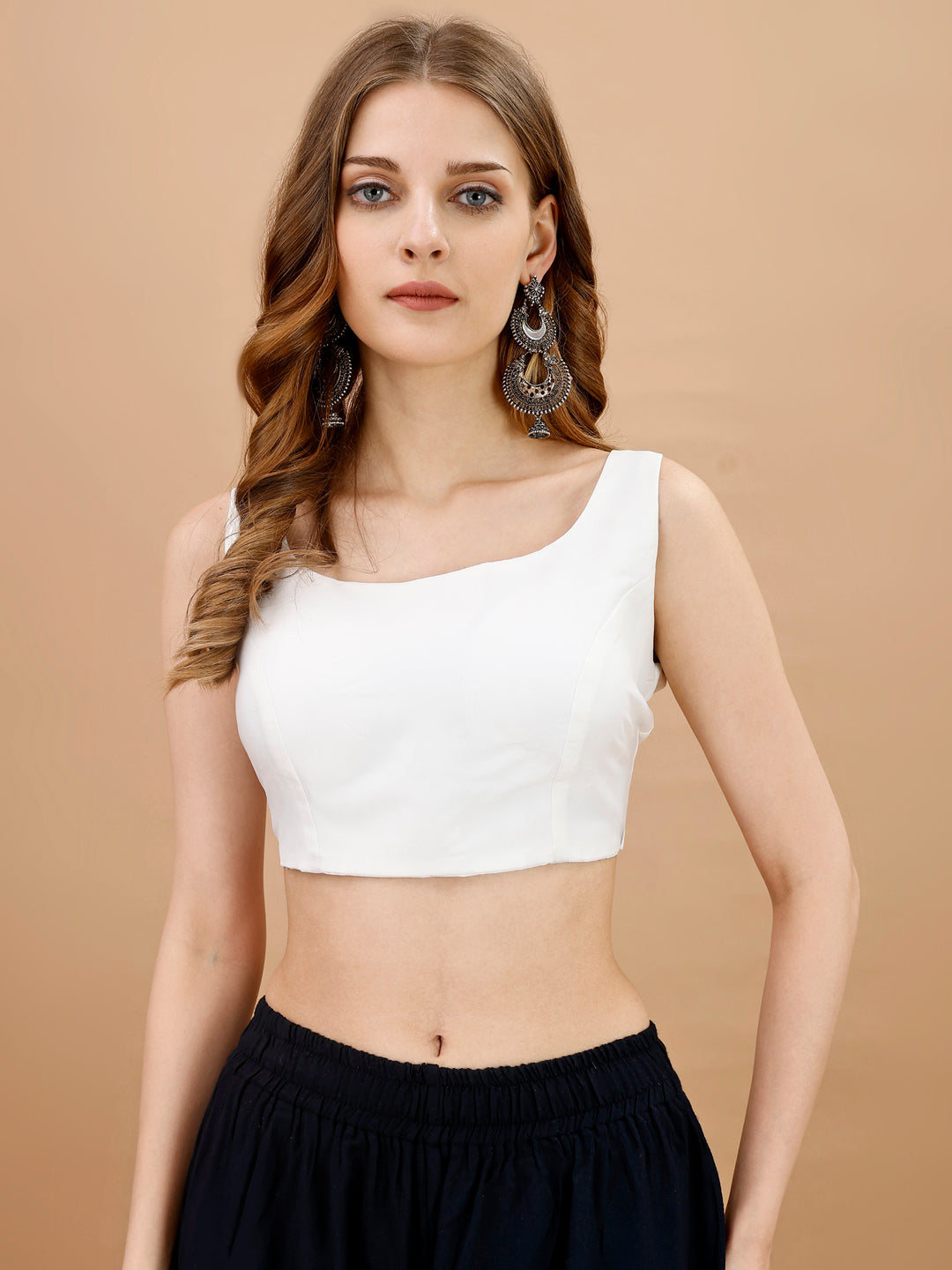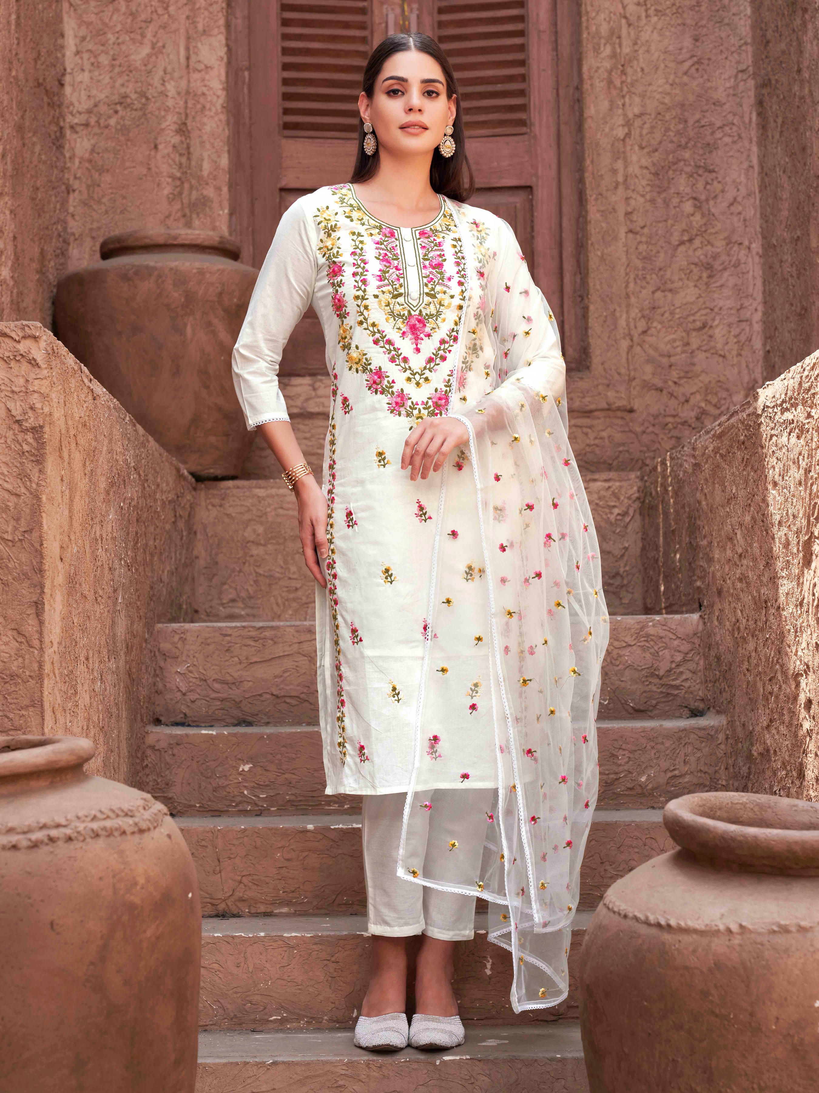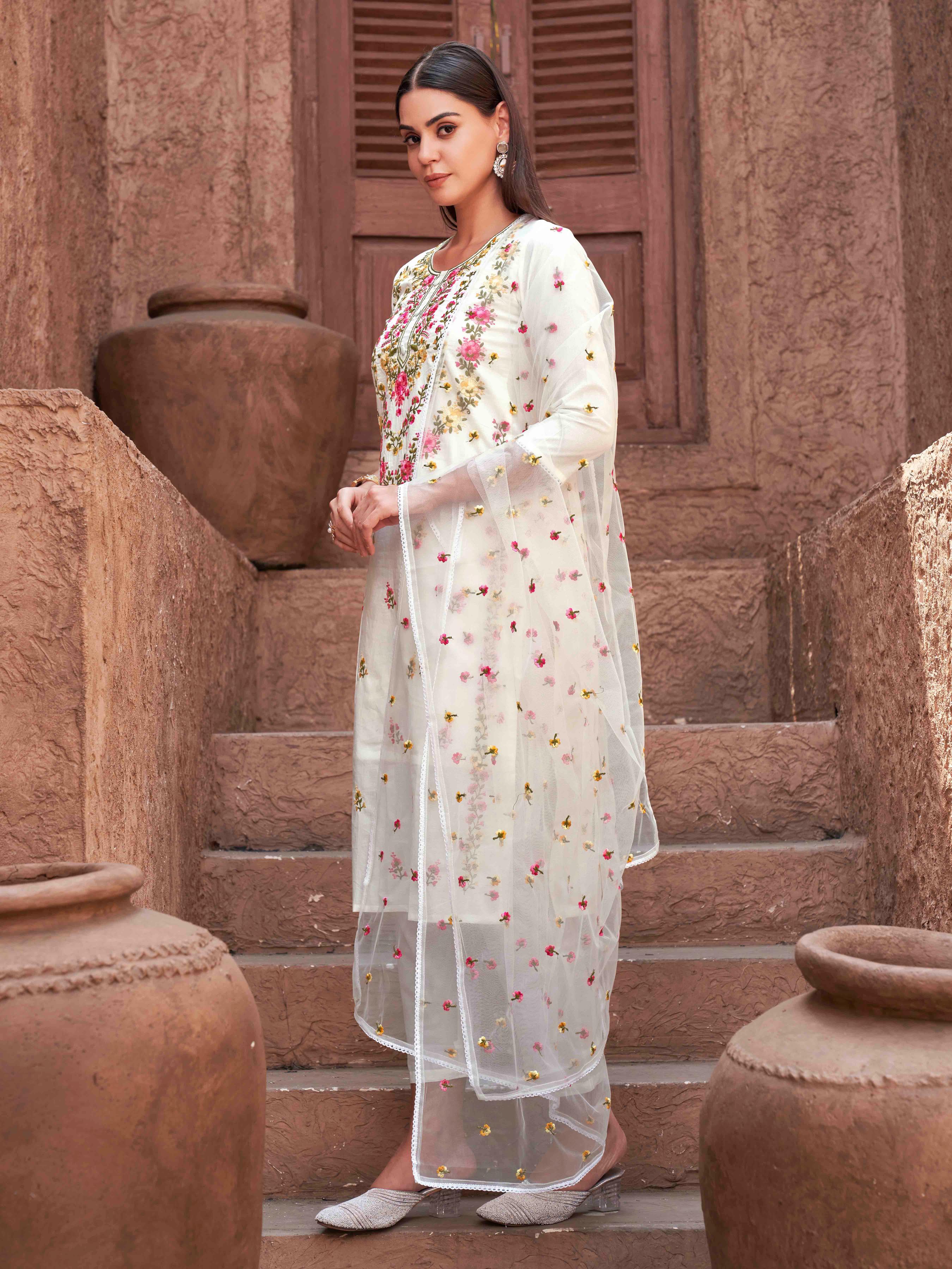 White Halter Neck Gathered Rayon Kurta Set With Yoke Embroidery