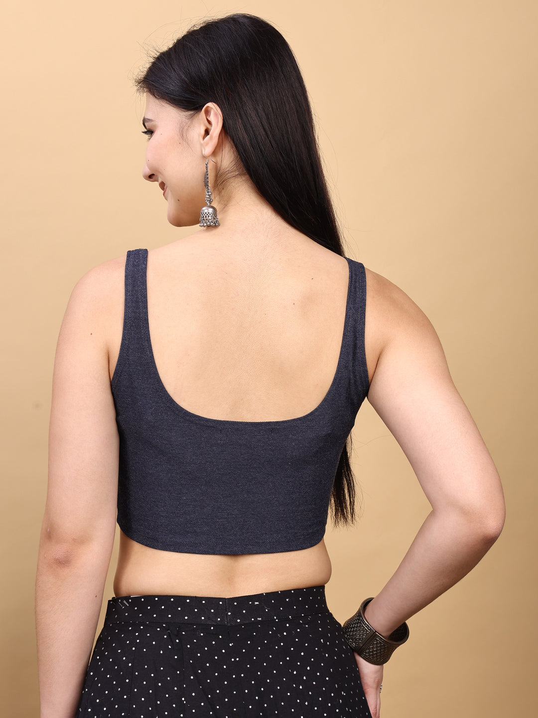 Black colored denim lycra stretchable blouse