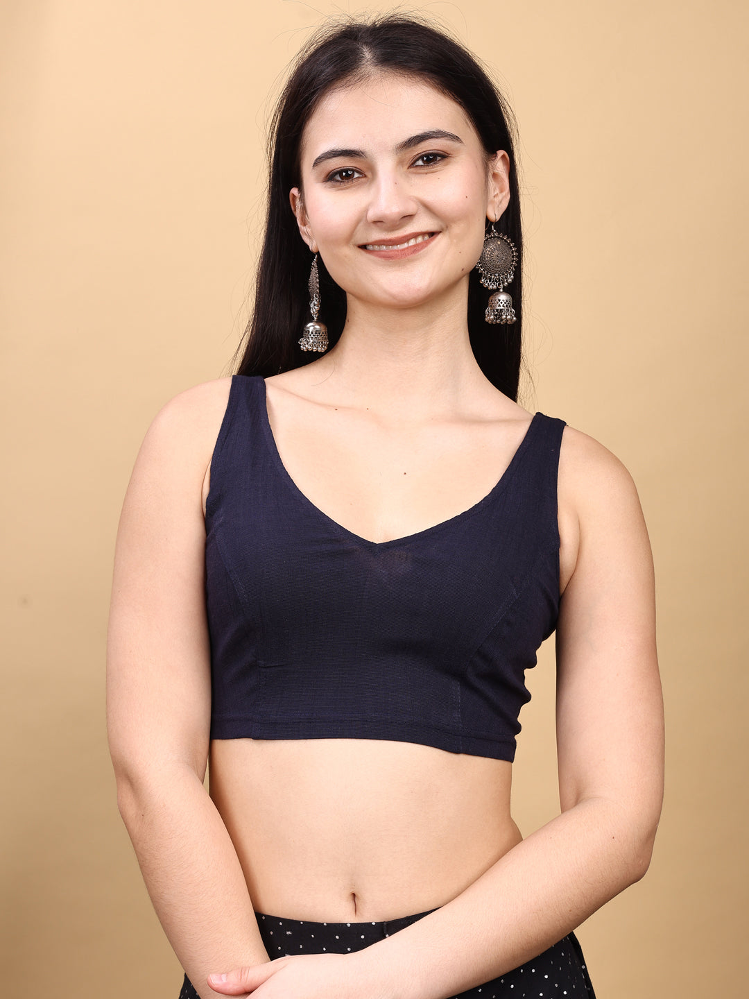Navy blue colored lycra v neck blouse