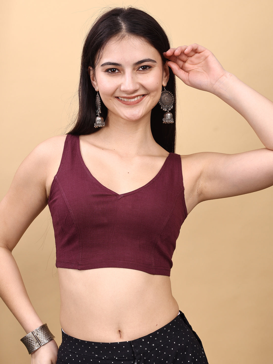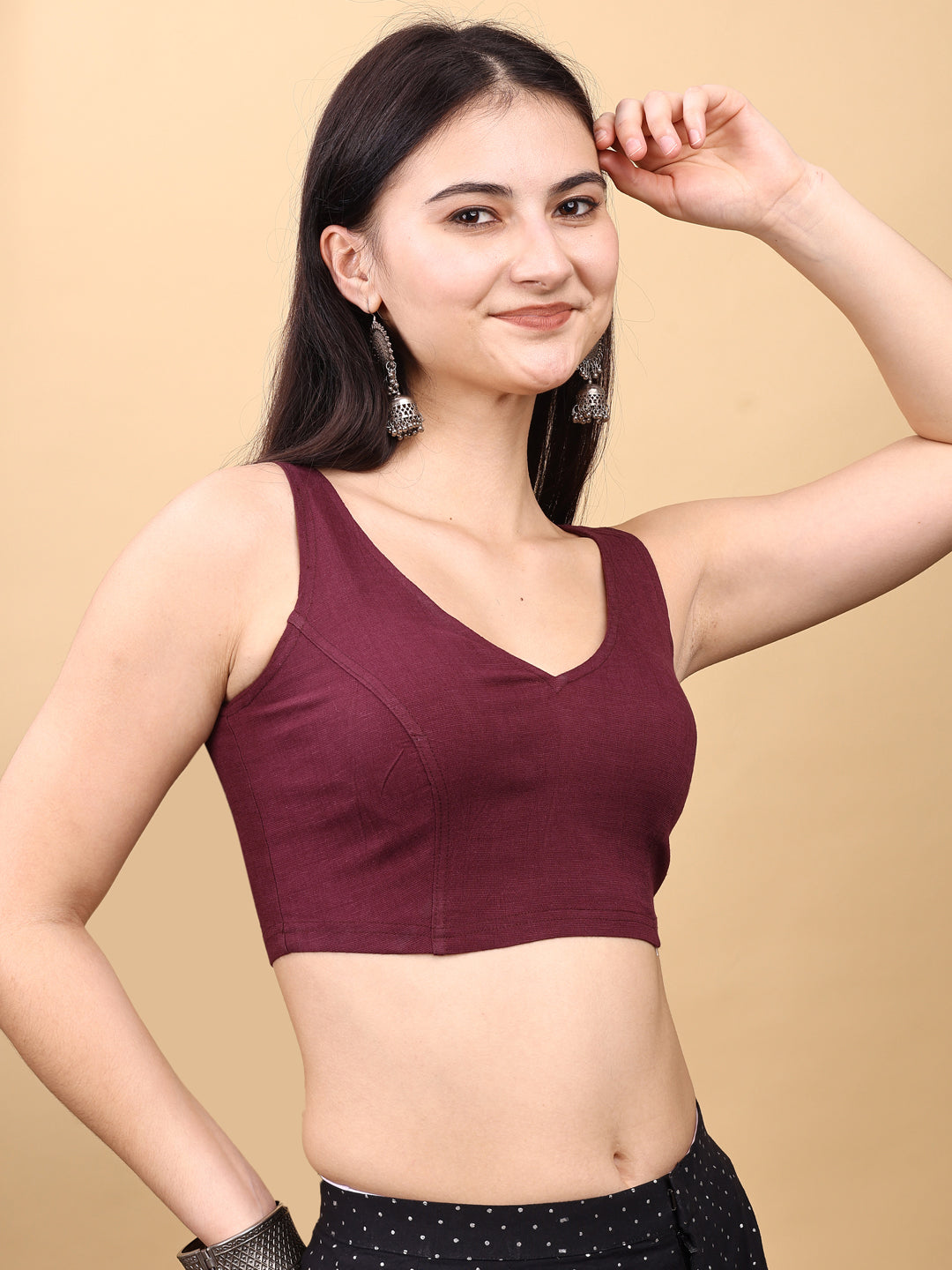 Wine colored lycra v neck blouse
