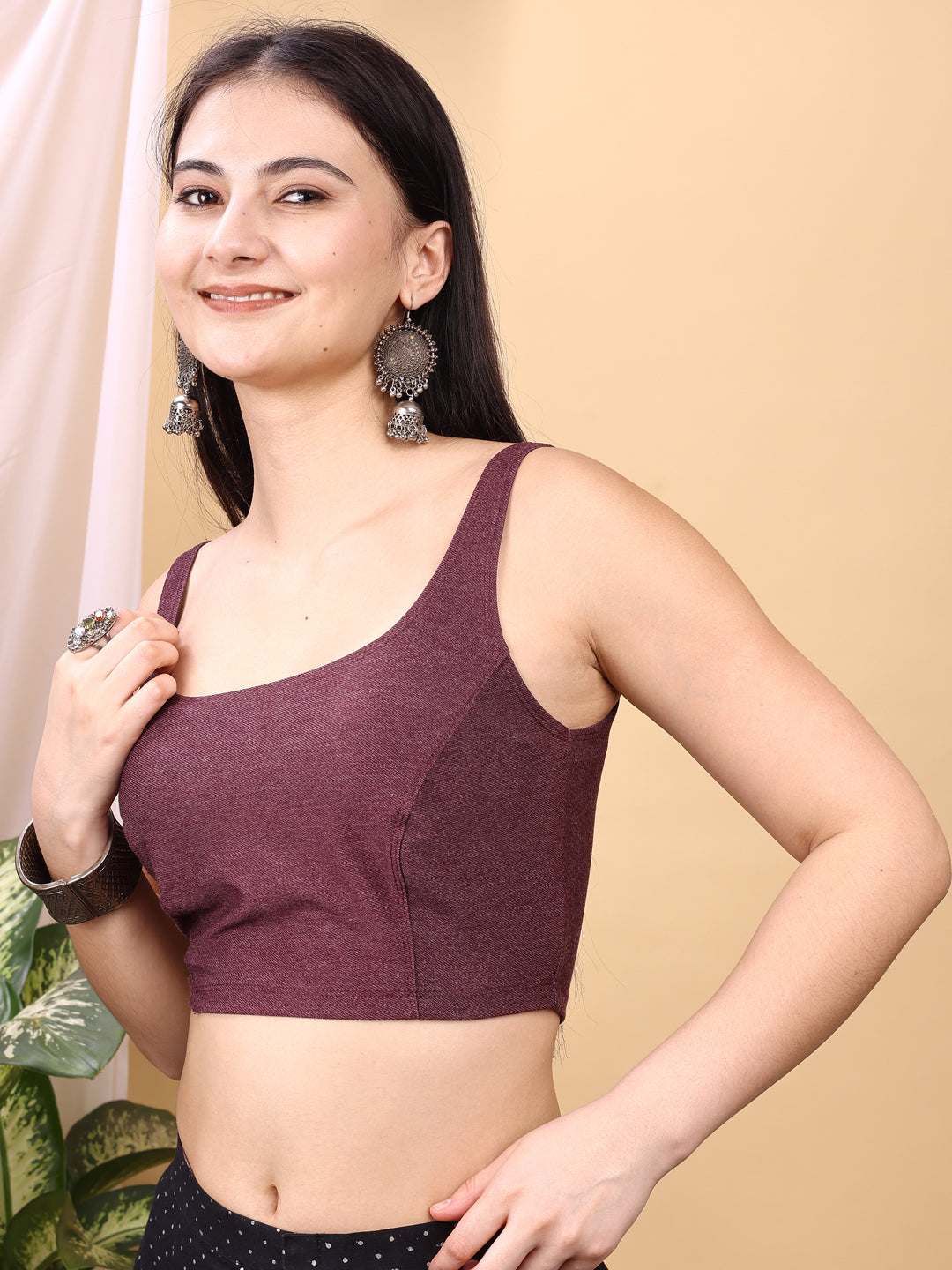 Wine colored denim lycra stretchable blouse