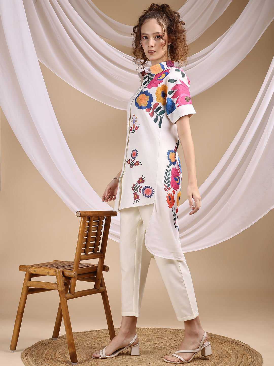 Off White Colored Printed Poly Cotton Up-Down Pattern Co-ords Set