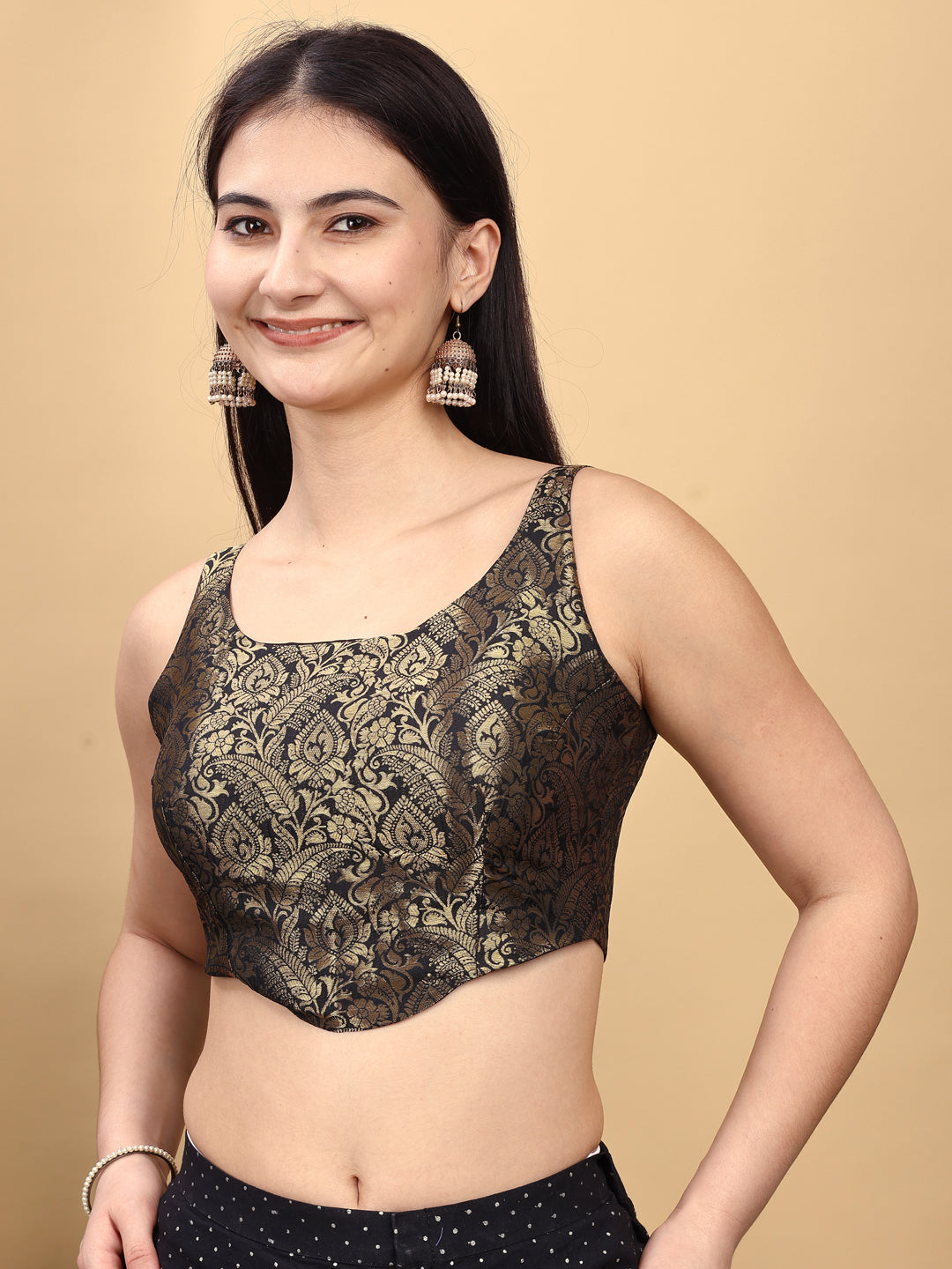 Black colour brocade sleeveless blouseRs. 854.00Rs. 2,997.00